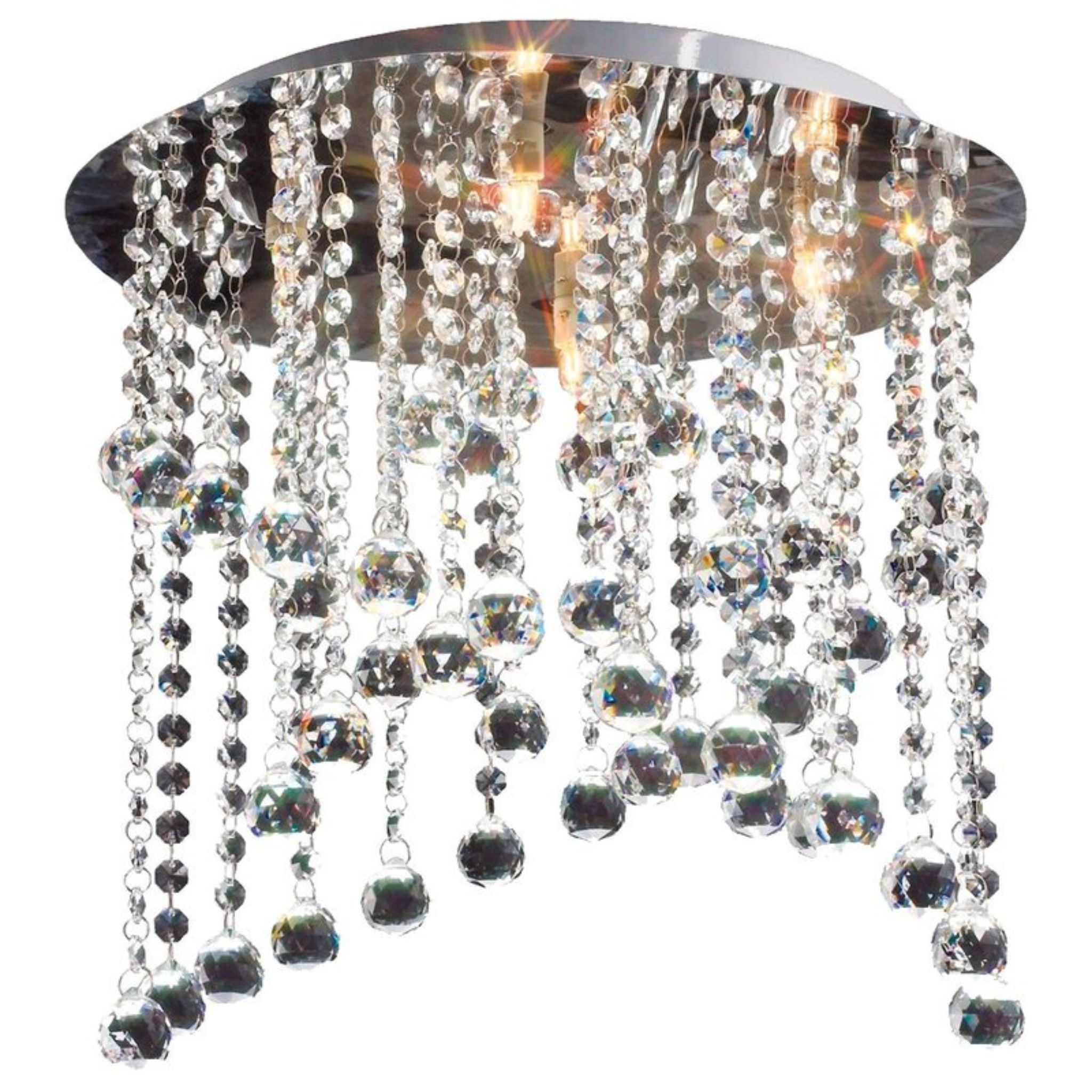 Araña fija de 3 luces tulipa globo blanca con rayas y base negra.AV_17963