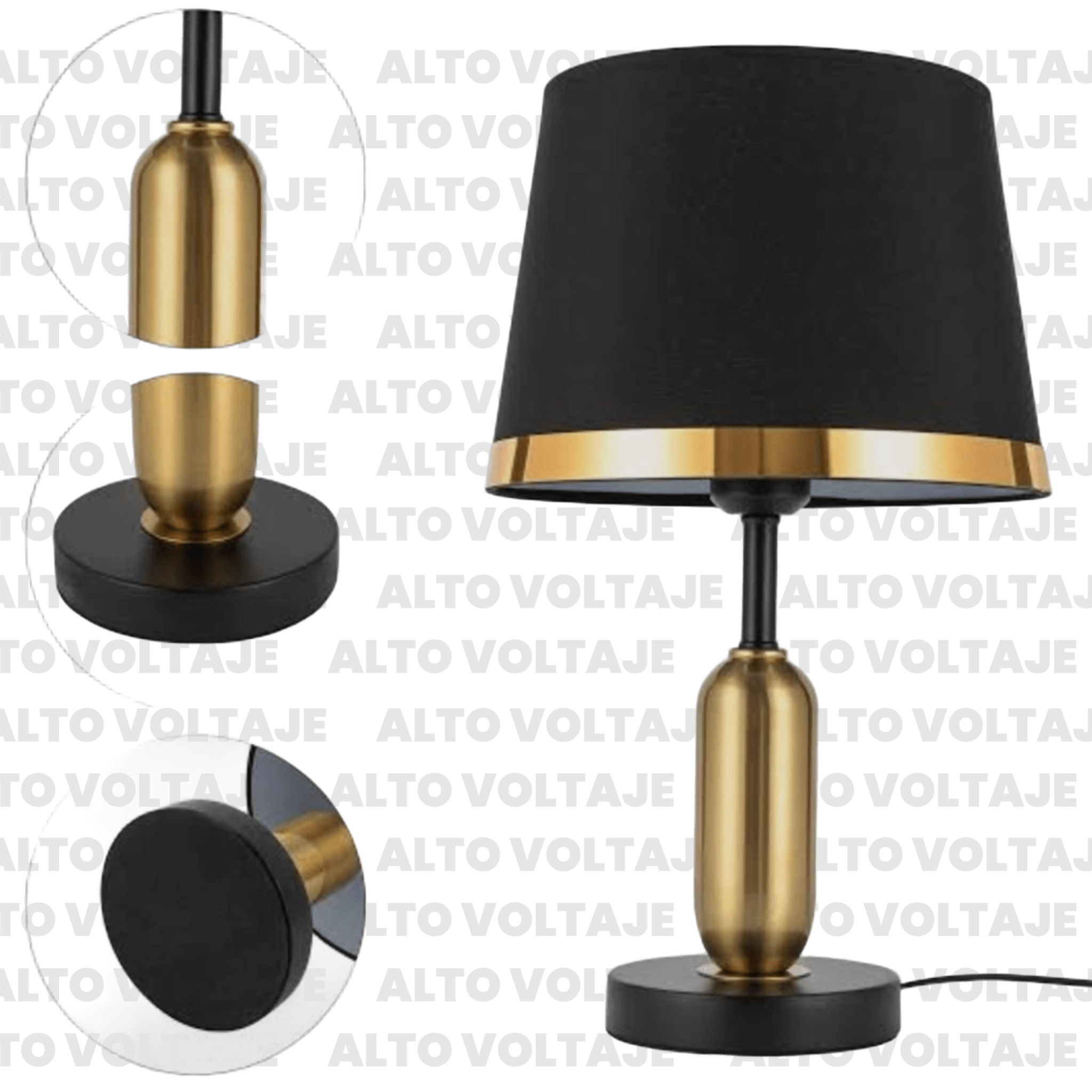 Velador base Negra Dorado grande de Piedra con pantalla. AV_19857.