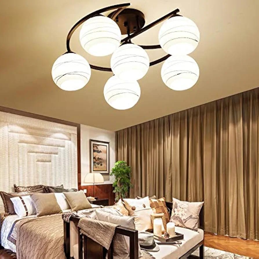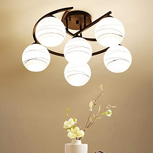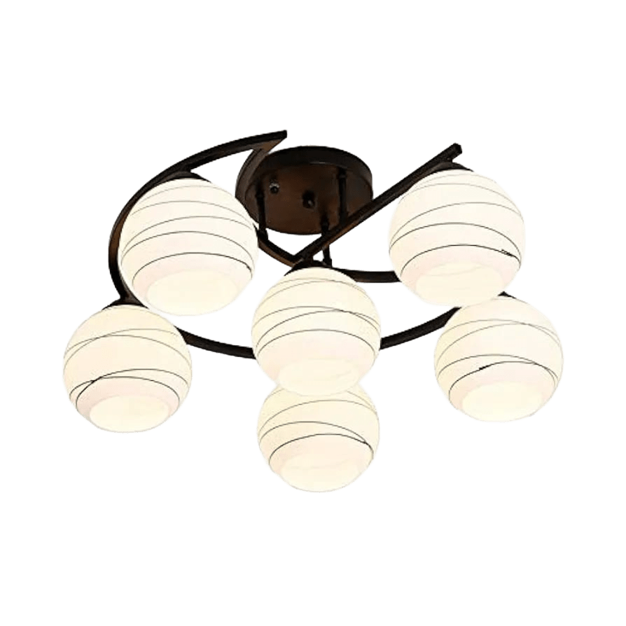 Araña Fija De 6 Luces Base Negra Tulipas Blancas Rayadas