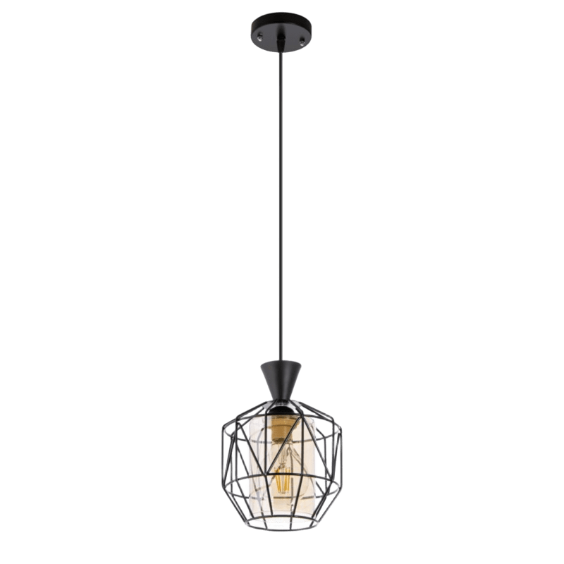 Colgante Rejilla Metal Con Vidrio Color Ambar
