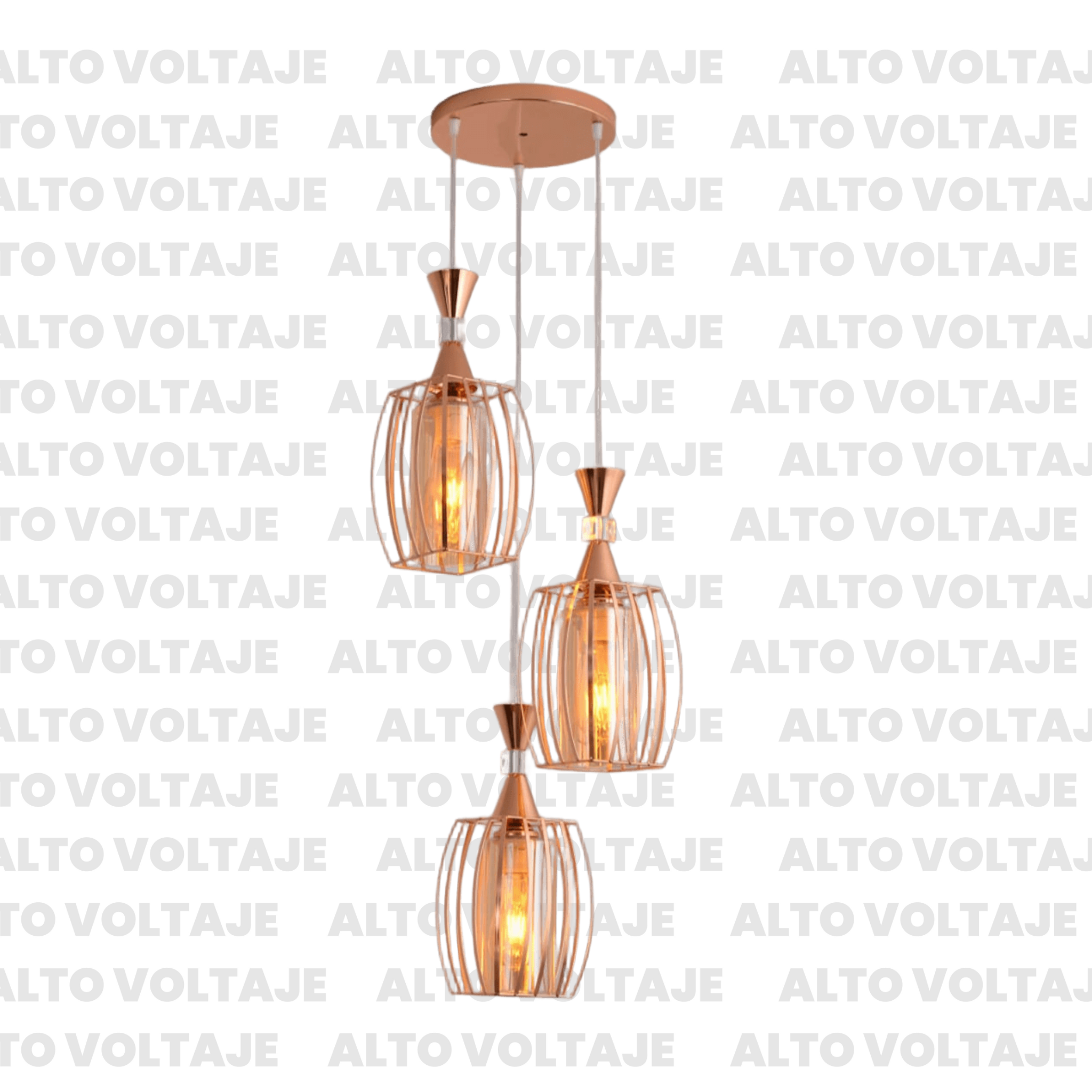 Colgante Rejillade 3 luces dorado con tulipa ambar. AV_19685.