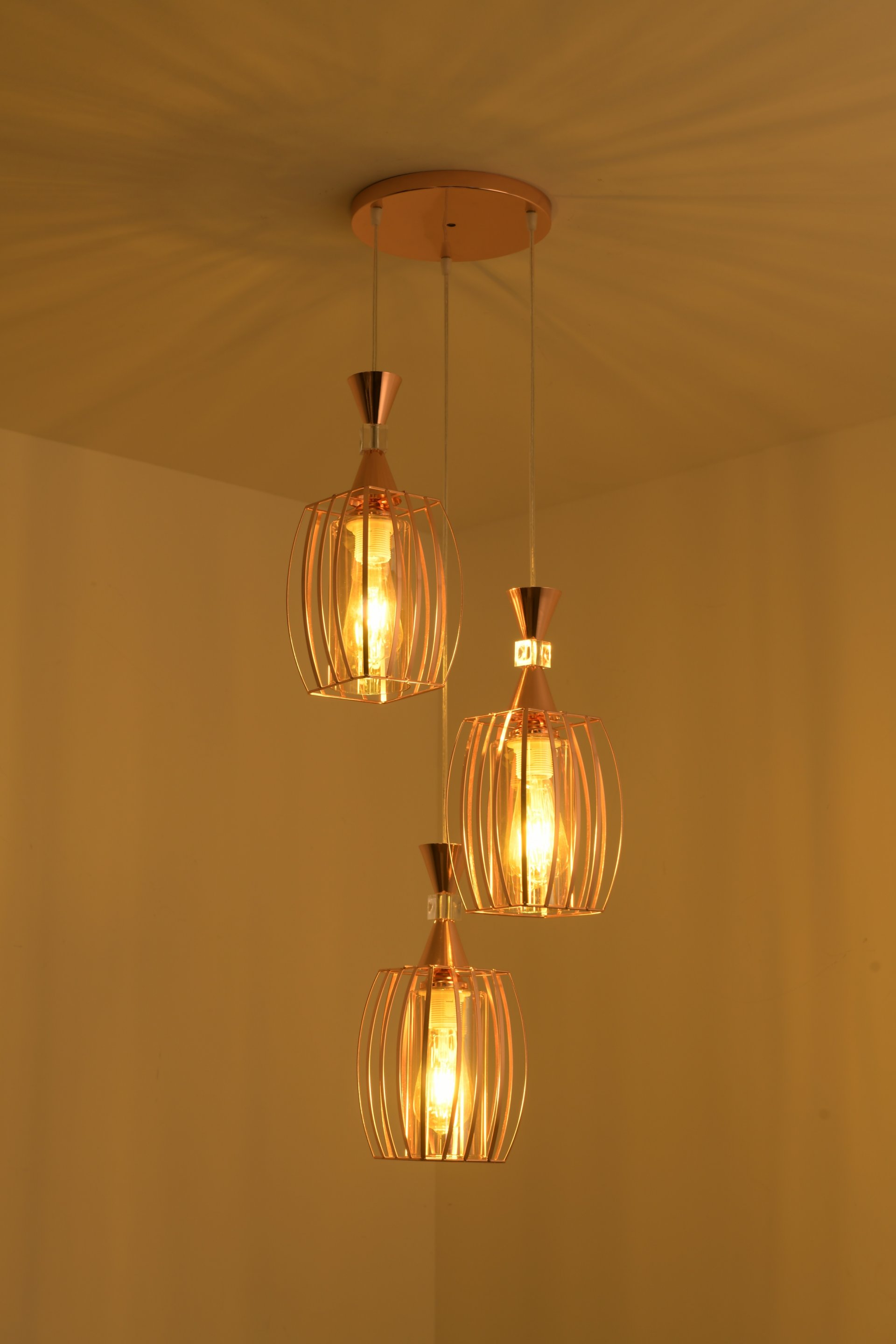 Colgante Rejillade 3 Luces Dorado Con Tulipa Ambar.