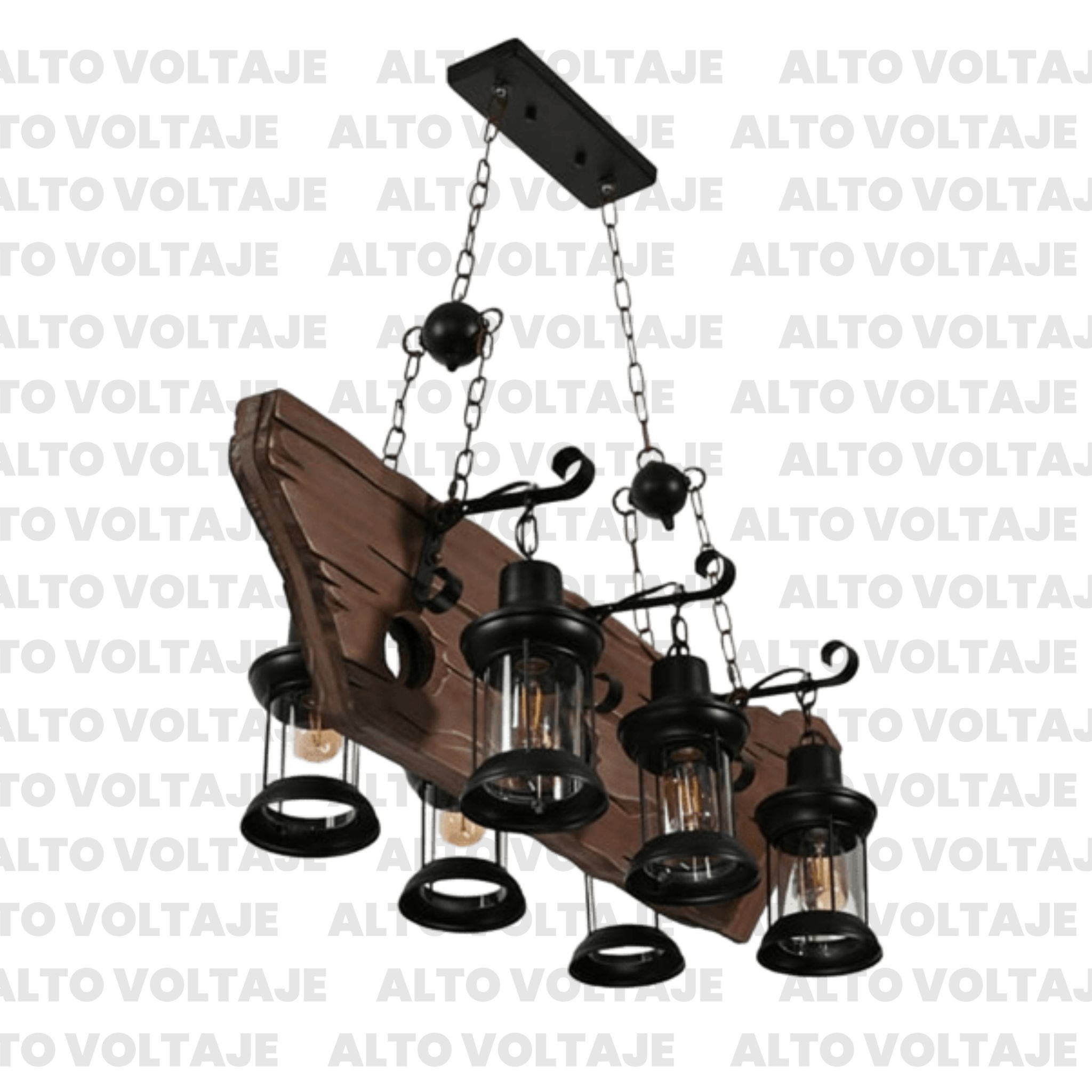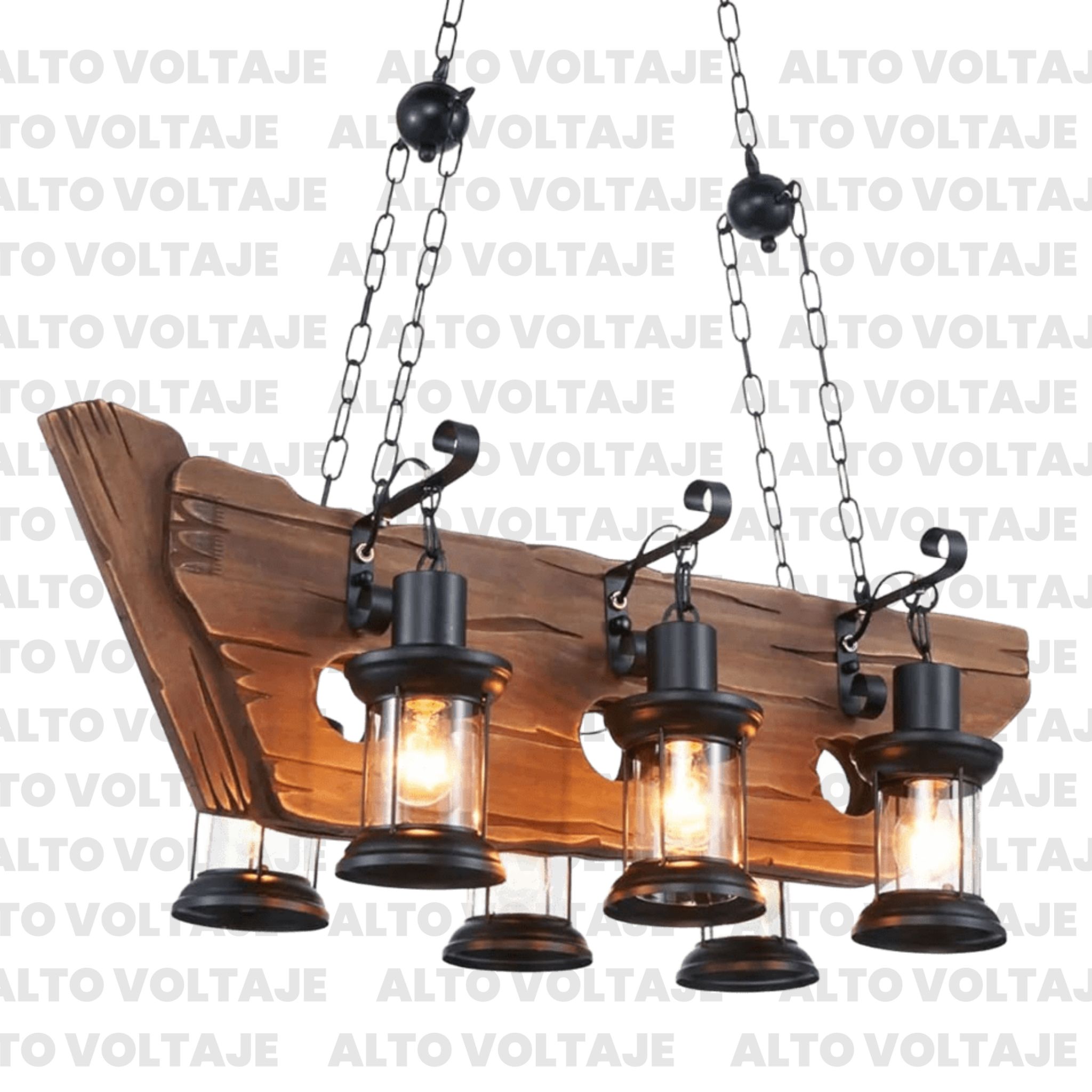 Colgante Rústico de madera tipo Barco 6 luces. AV_19431