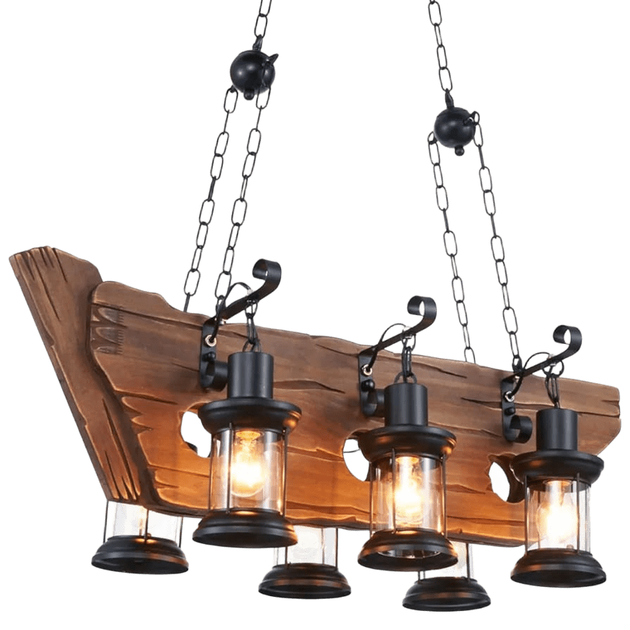 Colgante Rústico De Madera Tipo Barco 6 Luces