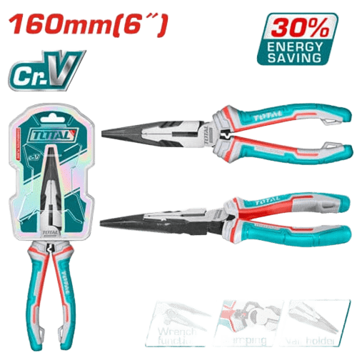 Pinza punta fina Total 160mm, mango rojo. AV18730