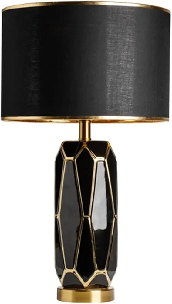 Velador base Negra Dorado grande de Piedra con pantalla. AV_19857.