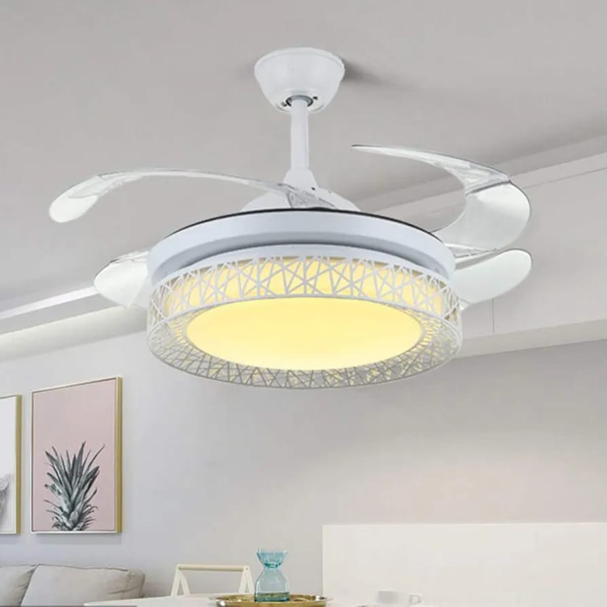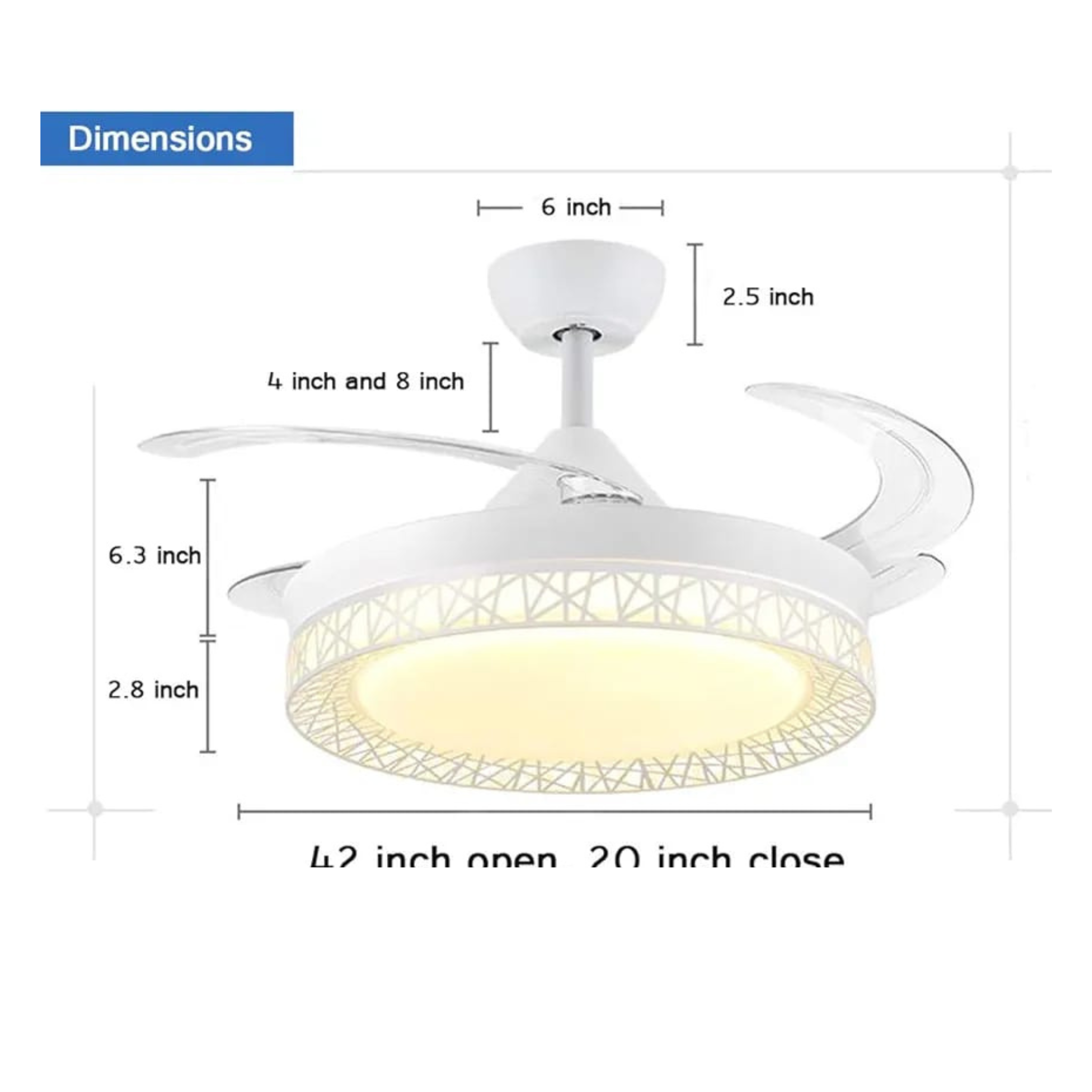 Ventilador led con Aspas Retraibles , con rayas blancas. AV_19703.